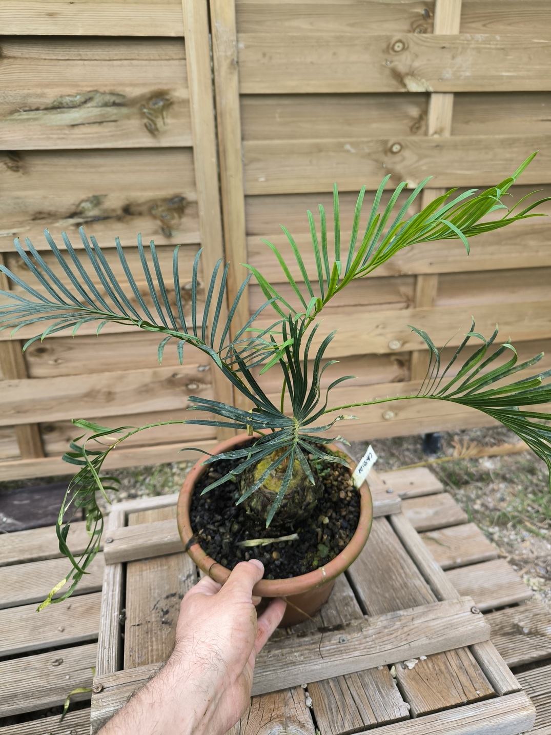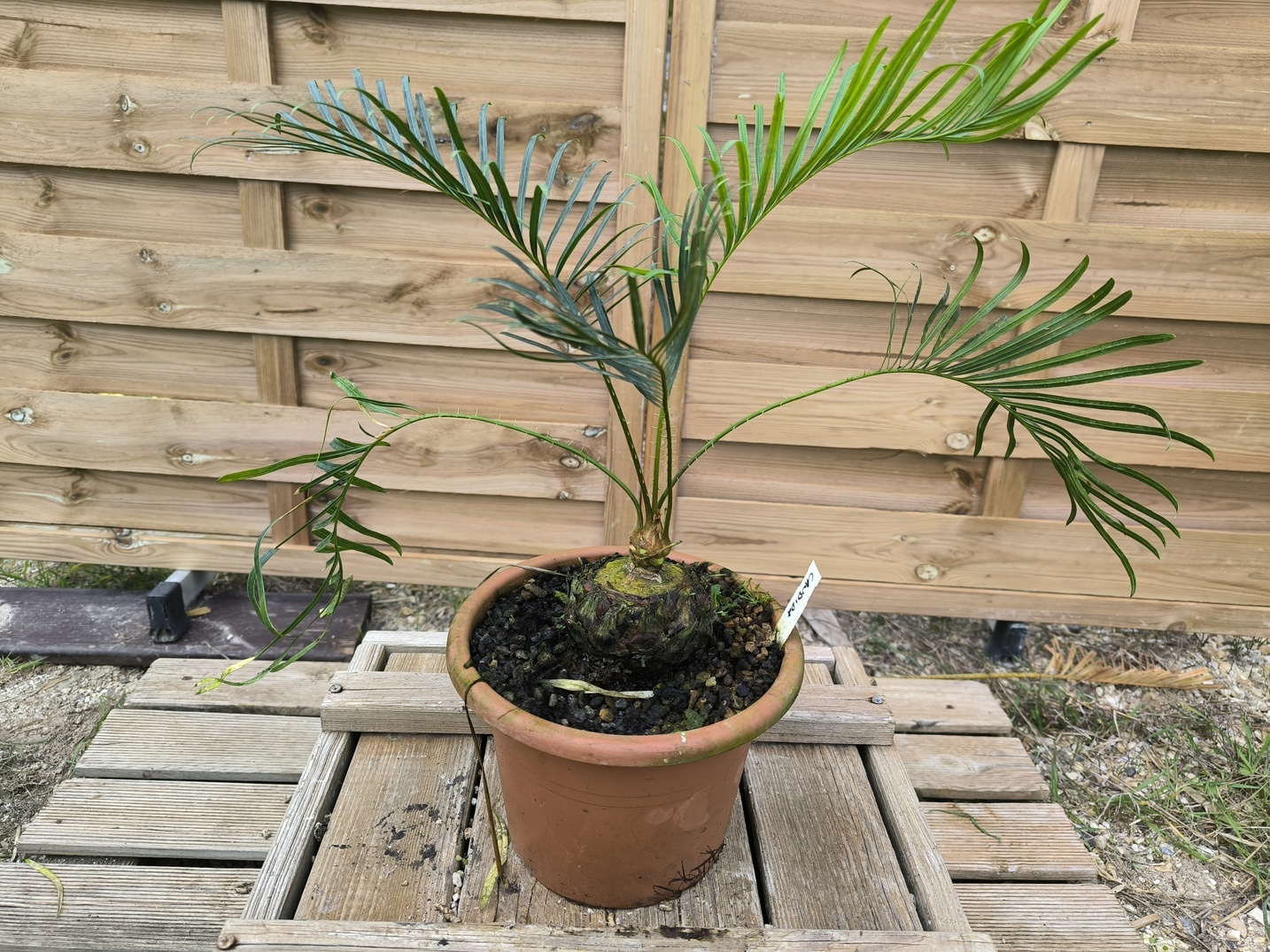 Item description : One Cycas candida grafted onto C. revoluta, with a 3cm caudex approximately (the rootstock is around 7-8cm), in a 3L pot. The plant for sale is the plant on pictures. A caresheet is provided with the plant. Plant was repoted this season, please wait 2026 to repot again!