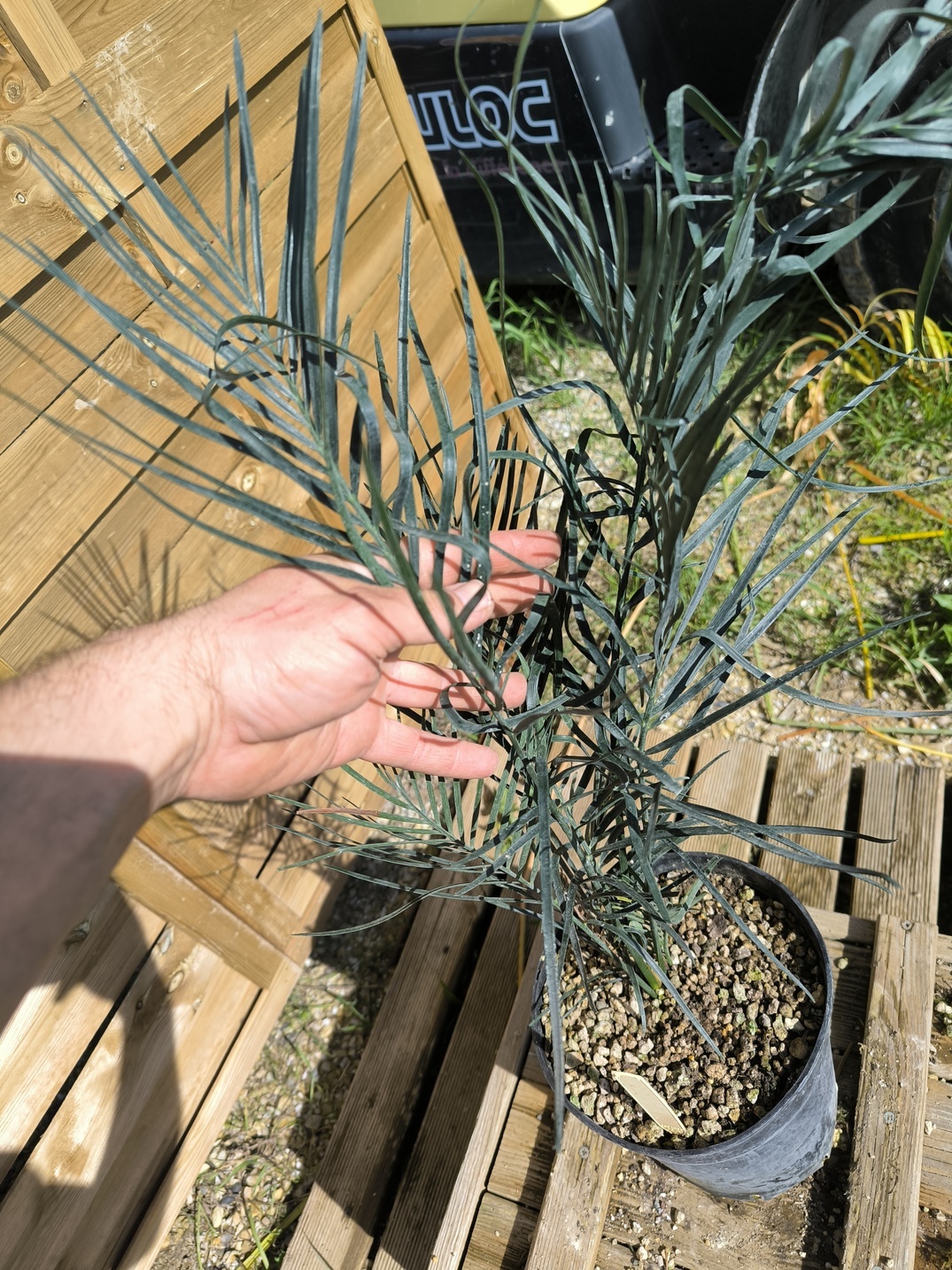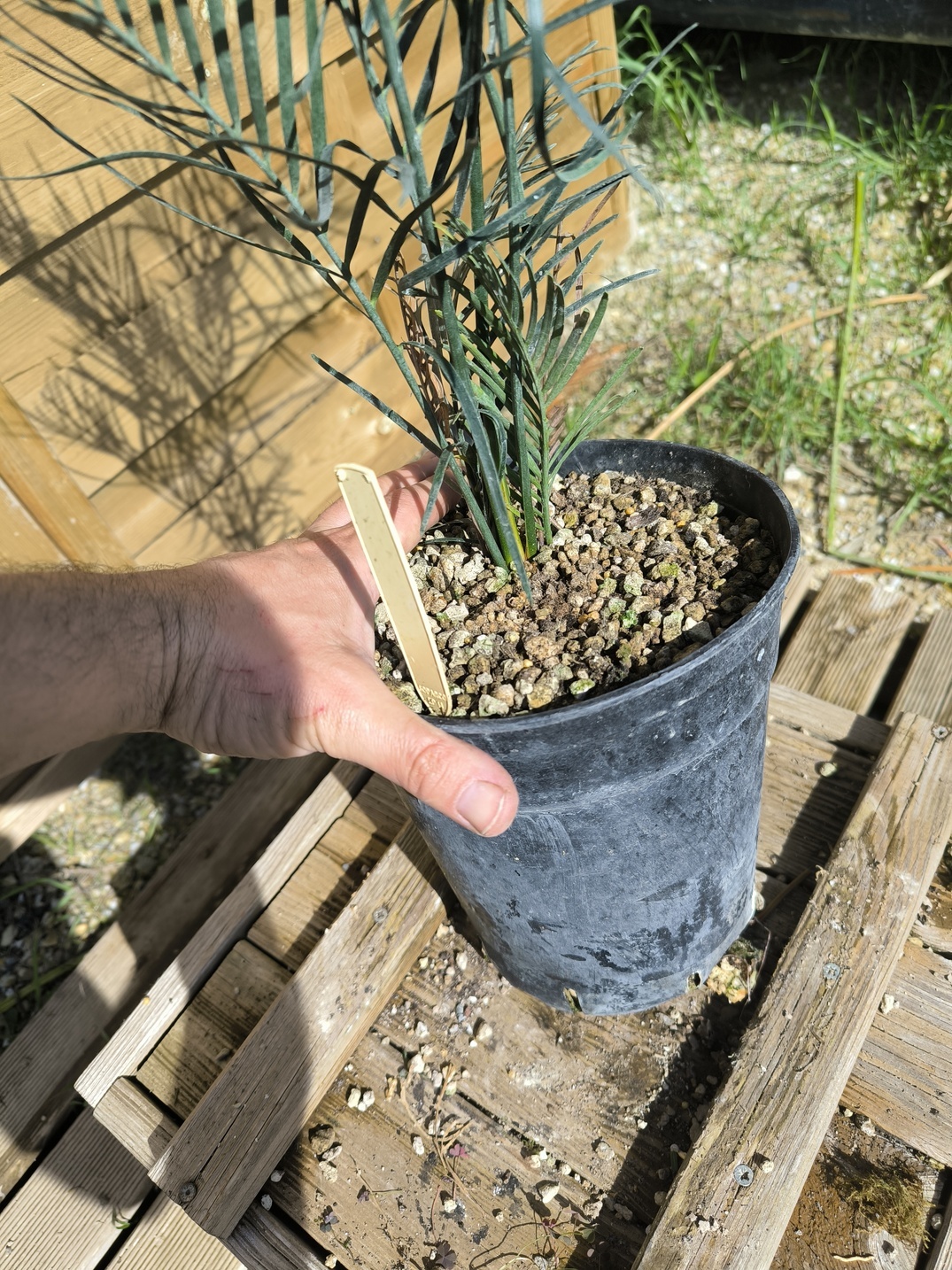 Description de l’objet en vente :Macrozamia riedlei avec un caudex d’env 4-5cm en pot de 5L. La plante en vente est celle des photos