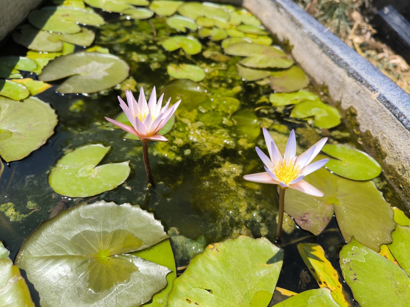 Care : Easy to grow. Water temperature from 18 to 30°C, pH 7-8, varied substrates, no problem with clay. Full sun. If sun exposure is too low, the plant will remain under its subaquatic form. A 5-10L water volume is more than enough. Fertilize often for abundant blooming.